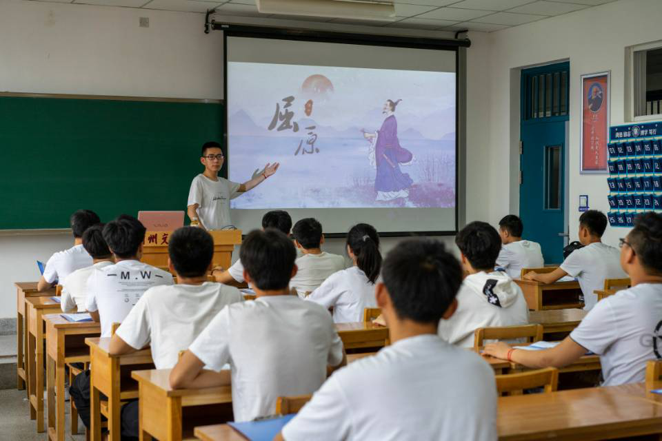 为了更深入了解屈原及屈子爱国精神,预科1901班李靖龙同学为同学们进行解说,同时他还为屈原做诗一首,《庚子年端午祭屈原》: