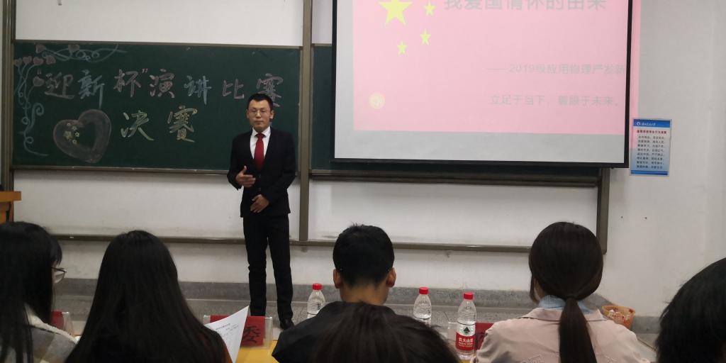 本次演讲比赛分为初赛和复赛两个环节,从初赛的34位选手中选取12位进入决赛。决赛以“国旗下的演讲”为主题,评委们以“思想内容能紧紧围绕主题,观点正确、鮮明,见解独到,内容充实具体,生动感人;材料真实、典型、新颖,事迹感人、生动,反映客观事实,体现时代精神;演讲者语言规范,吐字清晰,声音洪亮”为标准打分,12位选手以抽签方式决定出场顺序,依次登台展现演讲风采。他们以“香港澳门的回归”、“‘墨子号’量子卫星的发射”、“新中国成立70周年庆典的成功举行”等为例或趣味生动、或慷慨激昂诉说着自己身为中国人的骄傲与自豪,激昂的语调、流畅的幻灯片彰显着自己对祖国的热爱与赞美,处理得当的语言技巧、饱满的精神把现场气氛一次又一次的推向高潮,给现场评委和观众带来了一场视听盛宴。最终,应用物理1901班王威荣获一等奖,应用物理1901班王自雄、统计学1901班高颖颖荣获二等奖,预科1901班宋卓恒、应用物理1901班严发新、统计学1901班金雯渲荣获三等奖,统计学1901班王泽晨等6名学生荣获优秀奖。