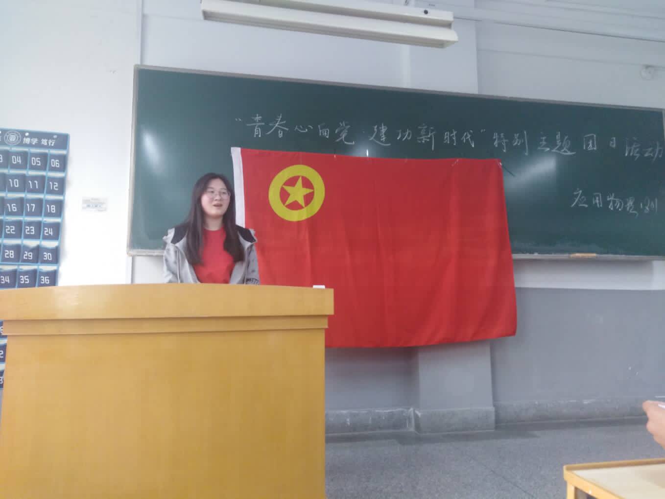 为庆祝中华人民共和国成立70周年,纪念五四运动100周年,激励和引领广大青少年大力弘扬以爱国主义为核心的伟大民族精神,坚定“四个自信”,应用物理学18团支部开展了“青春心向党 建功新时代”特别主题团日活动。