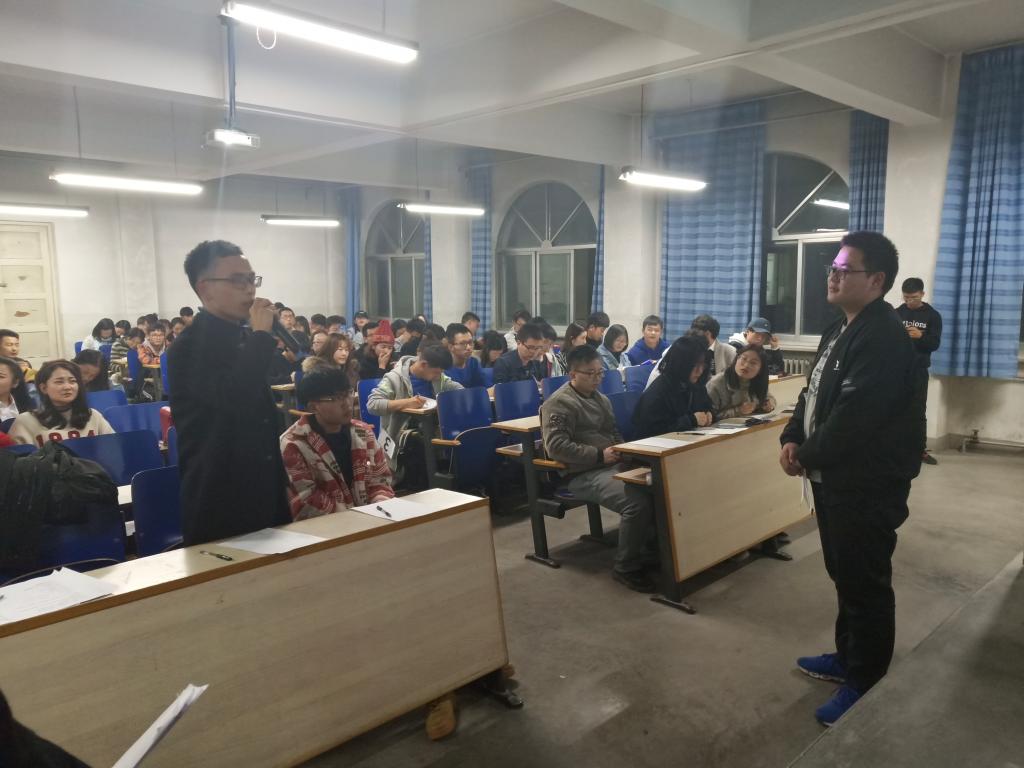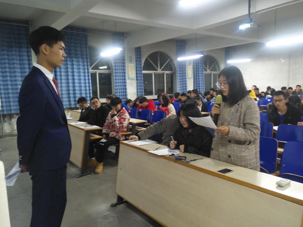 为激发同学们的潜力,提高同学们的自身表达能力与思维能力,增强同学们的自信心与荣誉感,2018年11月4日晚7:30,数理学院与艺术设计学院联合举办的迎新演讲比赛(决赛)在第七教学楼1402教室成功举行。数理学院团委副书记王杰、艺术设计学院团委副书记陈兆瀚和刘铭达、辩论协会演讲部部长张琳、“红色传情蓝色传情”演讲比赛冠军王玒臻担任此次比赛的评委。经过初赛的选拔,我院6位选手参加了本次决赛。
