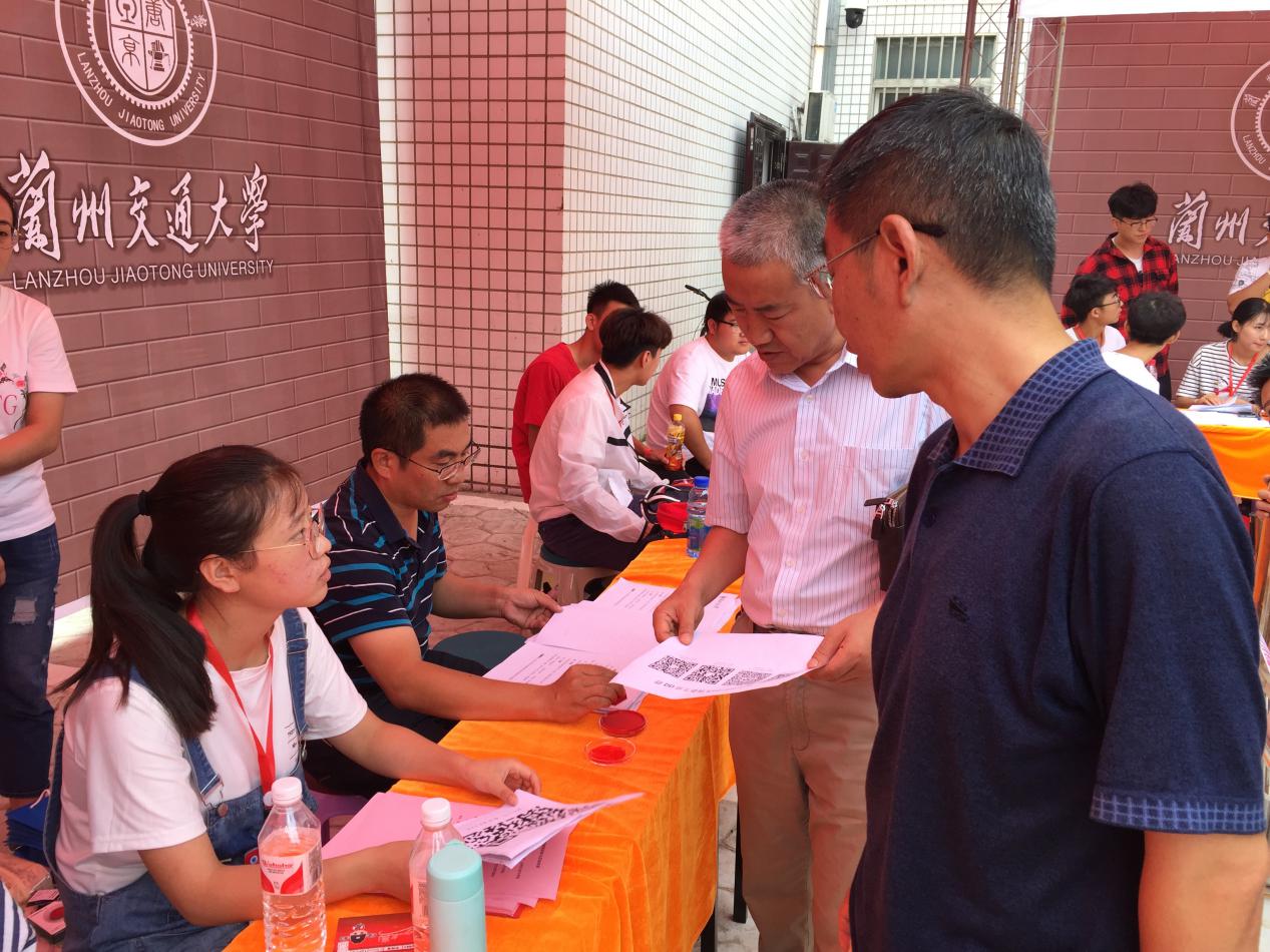 8月26日上午,院领导来到迎新现场,看望2018级新生及家长,并对迎新工作人员进行了亲切问候。在迎新处,党委书记孙爱良、院长白利华详细地询问了新生报到人数和新生入住情况,充分肯定了迎新人员的工作,并叮嘱要热心细致地做好迎新各项工作。