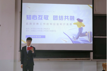 为深入学习贯彻习近平新时代中国特色社会主义思想,全面贯彻党的民族理论政策、宗教工作基本方针,引导广大师生树立正确的历史观、民族观、国家观、文化观,铸牢中华民族共同体意识,促进各民族共同团结奋斗、共同繁荣发展。数理学院团委于3月28日组织开展"知心互敬,团结共融" 民族宗教工作应知应会知识竞赛。