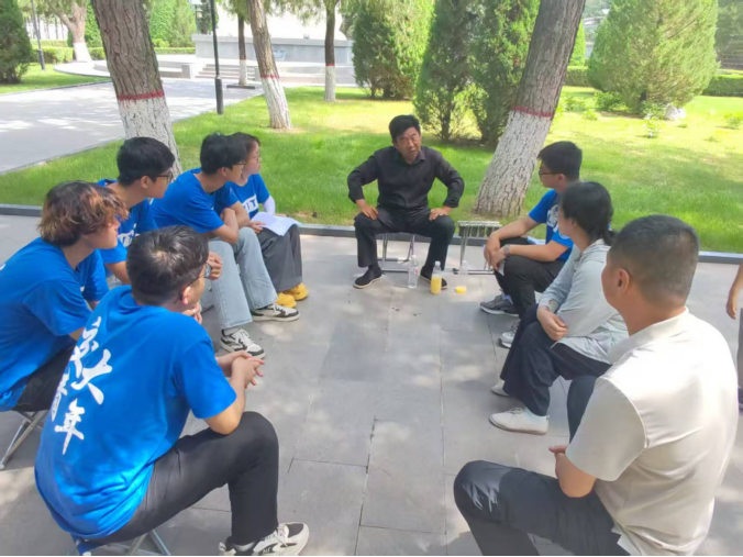 老馆长还为实践团成员讲授了一堂生动的"群众工作课"。在谈及大学生党员如何做好群众工作时,他指出:革命年代党员与群众是鱼水关系,这一优良传统在今天依然需要传承。他勉励大学生党员要始终摆正位置,将服务意识摆在首位——在校期间主动帮助同学、带头承担任务,未来走上工作岗位后更要将群众之事视为己任。这种服务精神必须"接地气",正如南梁革命先辈们当年走村串户走访老人整理史料时,正是凭借耐心倾听、真心帮扶的态度才赢得群众信任。