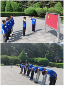 参观结束后,实践队员来到纪念碑前,深深三鞠躬,向革命先烈致以崇高敬意;带队教师带领党员重温入党誓词;实践团成员柳永强、郭易璇朗诵经典篇目《南梁精神,光耀千秋》,激昂的语调中饱含着对革命精神的传承之志;在微党课环节,柳永强和李嘉诚分别讲述了刘志丹、习仲勋两位革命先辈的感人事迹。通过多种方式凝聚起对革命烈士的深切追思与崇高礼赞。