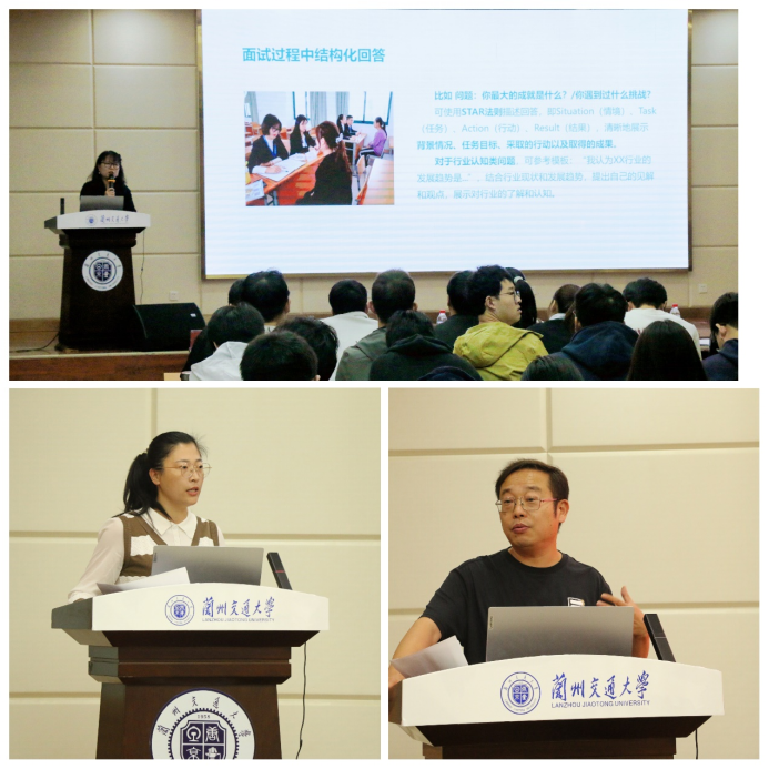 启动会第二环节,就业规范要求与面试技能指导。各办公室负责人聚焦毕业生需求精准发力。学工办主任黄俊涛为本科毕业生搭建分类就业交流群,按不同就业方向精准推送岗位信息,同时引导学生客观自我定位,理性把握就业形势,为秋季求职树立信心。研工办慕娜娜老师则针对研究生群体,重点讲解就业协议签订流程、档案转递规范,逐项明确注意事项,帮助研究生厘清毕业就业关键环节。学院党委副书记、副院长张晓丽聚焦求职技能提升,从 HR 青睐的自我介绍设计、面试应答逻辑打磨,到会面礼仪细节,全方位讲解面试技巧,为毕业生扫清求职路上的技能障碍。