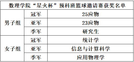 此次“星火杯”预科班篮球邀请赛的成功举办,既为全院学子搭建了交流互动、展示风采的优质平台,更以体育为桥凝聚班级向心力,以竞技为媒传承拼搏体育魂,为学院校园文化建设注入了蓬勃活力。未来,数理学院将持续丰富校园文体活动矩阵,为学生全面发展拓宽成长路径,引导广大学生以强健体魄、昂扬心态投身学习生活,在青春岁月里脚踏实地、奋力成长。