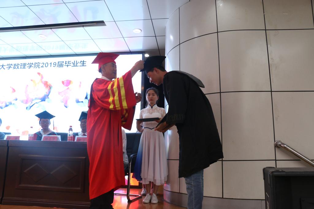 2019年6月21日中午,数理学院在五教翠英厅为2019届本科生及研究生隆重举办毕业典礼暨学位授予仪式。学院领导班子、科室主任、系主任、辅导员、班主任、任课教师及2019届全体本科生、研究生参加了毕业典礼。典礼由学院党委副书记、副院长张建刚主持。