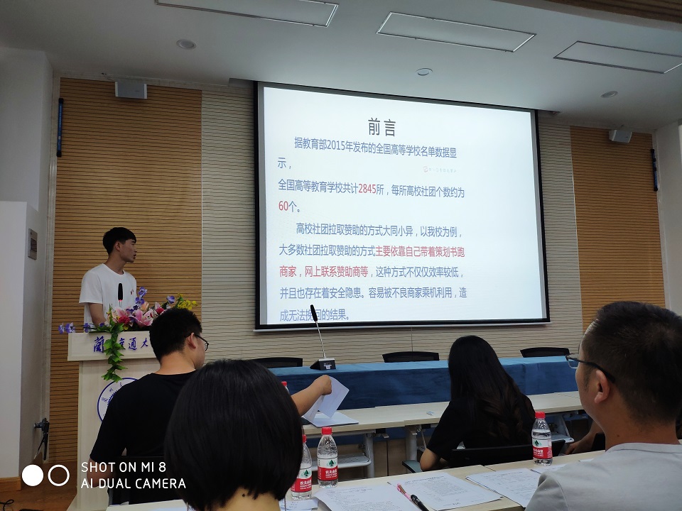 本次大赛经过前期的深入动员和认真筹划,学院共征集到10个项目参赛。选拔赛现场采取“5+3”模式,即五分钟PPT展示和三分钟答辩。PPT展示环节,各参赛团队就产品介绍、市场定位、商业模式、营销策略、财务分析、风险控制、团队结构等内容进行了重点阐述。答辩环节,评委对参赛队员进行了提问,并针对参赛项目提出了许多建设性的意见。