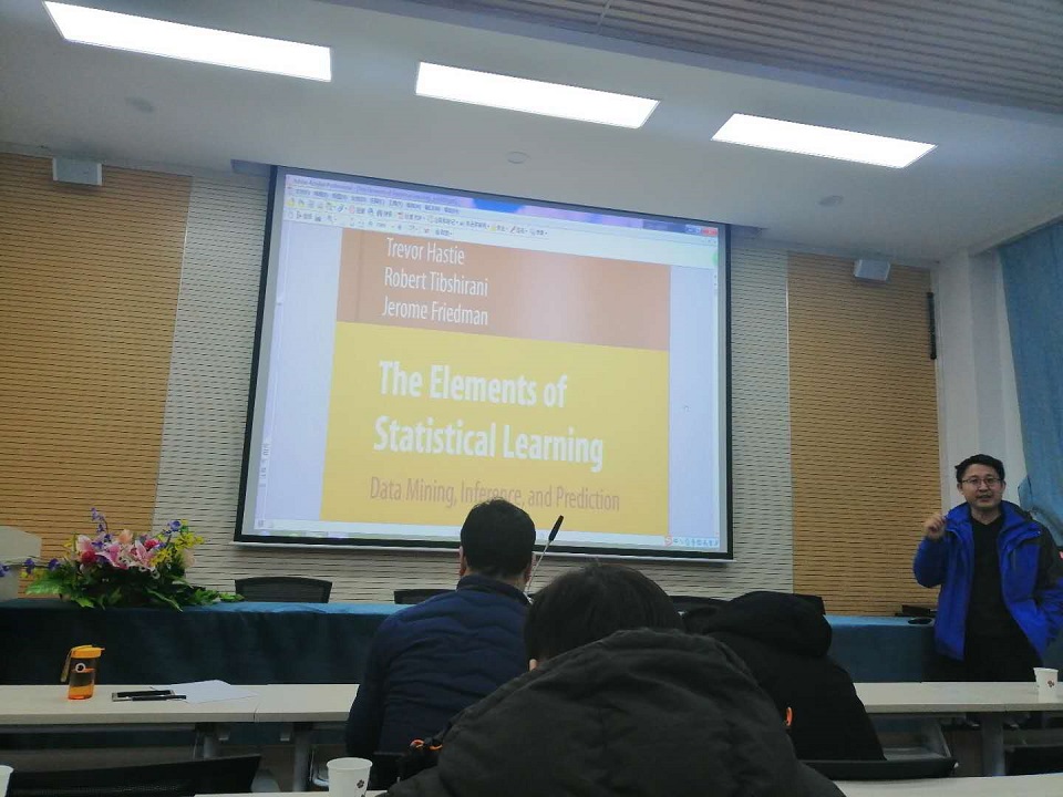 李维德做了题为“机器学习方法及其在预测中的应用”的学术报告,报告介绍了三个机器学习典型算法,其次对数据挖掘各个环节应用的机器学习方法进行探讨,然后对深度学习和卷积神经网络给予介绍,最后汇报李老师研究组的最新研究工作;赵学靖副教授做了题为“基于特征选择的高维数据统计分析”的学术报告。正态性检验是传统统计推断的基石,在数据分析中起着举足轻重作用,高维数据对正态性检验问题带来挑战,高维数据的特征选择研究也有其广泛的理论及实证意义。赵老师介绍了主成分分析和高维无损检测、基于稀疏原理的降维方法、高维生存数据的变量选择等问题,赵老师研究组的最新研究工作,并向大家介绍了一些经典机器学习资料。