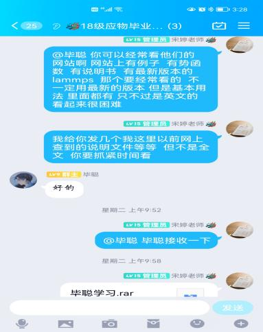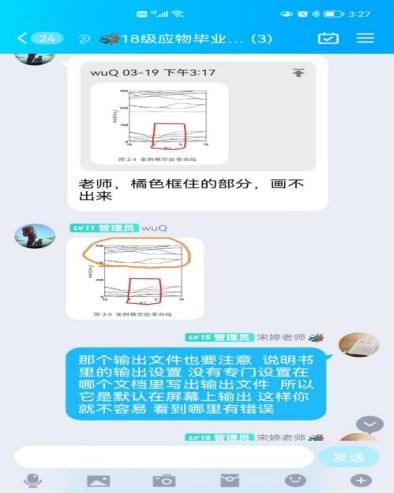 物理系宋婷老师利用QQ群详细解答和指导学生在毕业设计工作中遇到的问题,并及时开展疫情期间学生心理健康疏导工作,安抚学生内心的焦虑情绪,鼓励学生保质保量完成毕业设计。