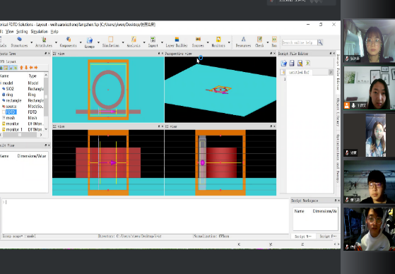 物理系王弈文老师让每个学生以共享屏幕的方式对自己的建模过程进行说明,提出软件学习过程中遇到的问题,通过小组讨论的形式解决问题并对学生遇到的共性问题和易错点进行集中讲解和演示。
