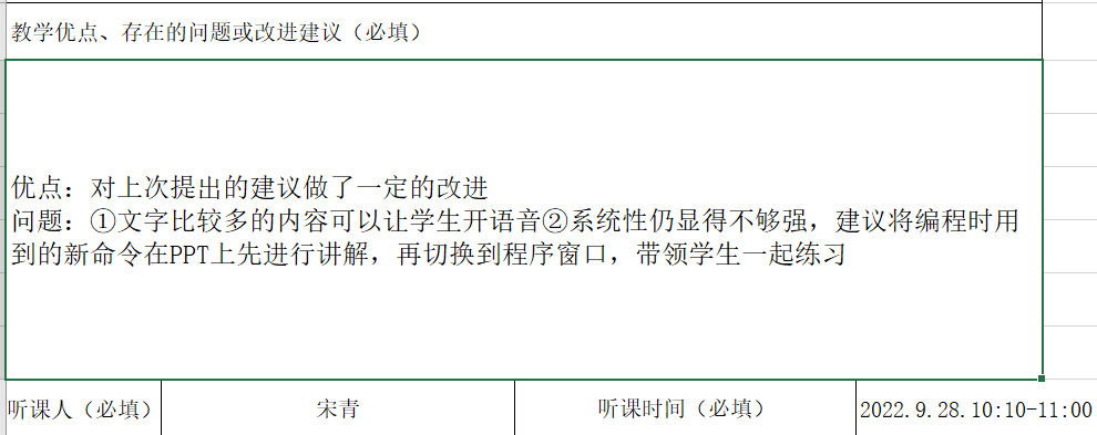 李沐春教授作为信息与计算科学教研室督导组成员,能够深入教学一线、坚持原则,对课堂教学中存在的问题,及时与任课老师交流沟通,提出了很多改进的意见和建议,努力做到诚心“督”,尽力做到悉心“导”,注重教学闭环反馈。