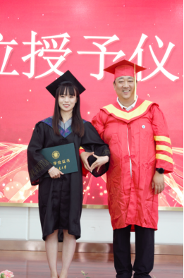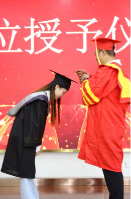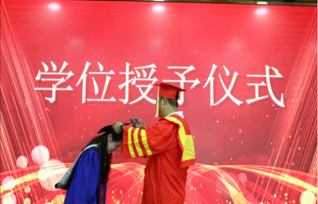 学位委员会副主席张睿副院长和学位委员会副主席邓醉茶副院长分别宣读授予本科生学位的决定和授予硕士研究生学位的决定。毕业生着学位服、学位帽依次上台,院长张建刚为每一位毕业生拨穗正冠,并与他们合影留念。拨穗从右到左,拨动起学业圆满完成的喜悦,拨动起师生同窗期间依依不舍之情。毕业生们向在座的师长鞠躬致谢,与同学拥抱惜别,青春与记忆在快门声中定格。