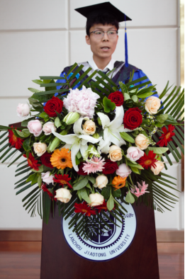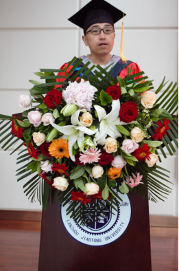 教师代表数学系主任梁力教授发言,希望毕业生们在未来漫长的生活和充满挑战的工作中,不仅需要具备自强不息的精神,同时也需要懂得适时妥协;不仅需要始终坚守自己的原则和底线,同时也需要学会灵活变通。在妥协的过程中依然要顽强地坚持自我的核心价值,在变通中更要坚定不移地自强不息,勇往直前。