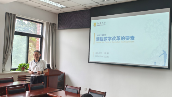 陈敏副校长随后作了题为《新时代背景下课程教学改革的要素》的专题报告。他回顾了新世纪以来我国高等教育的课程教学改革历程,介绍了新时代中国高等教育的新形势,深入讲解了一流课程的属性与内涵,剖析了课程建设的“两性一度”,详细阐述了一流课程建设的九大要素。最后,陈敏以他带领的教学团队建设的“光学”国家级一流本科课程为例,分享了在课程思政、教学体系、数字化资源建设、以及基于学习行为统计的过程性量化评价等方面的课程建设经验。互动环节,陈敏对参会教师提出的专业建设、课程建设、课程思政实施、人工智能赋能本科教学等问题进行了一一解答。