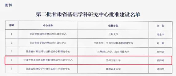 近日,甘肃省科学技术厅公布了批准建设第二批甘肃省基础学科研究中心名单,我校“甘肃省复杂系统分析及控制基础学科研究中心”成功入选。
