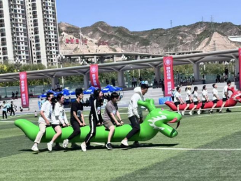 在丰富的趣味运动中,他们团结,默契,