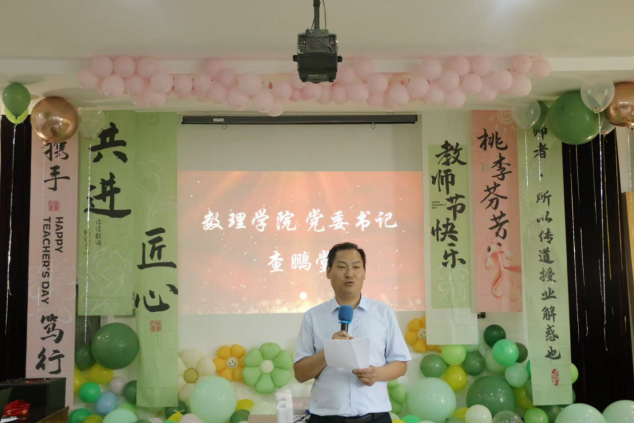 为庆祝第41个教师节,9月11日下午数理学院围绕“尊师重教·铸魂育人·凝心聚力·欢乐同行”主题,组织开展庆祝教师节暨师德师风建设主题活动。数理学院领导班子、全体教职工、退休教师代表100余人参加了活动。