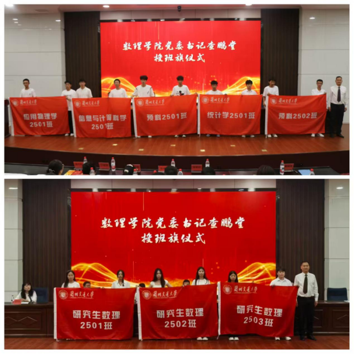 紧接着,学院党委书记查鹏堂依次为2025 级本科生、研究生班级授班旗,班旗在手间传递,既标志着班级向心力的凝聚时刻,也承载着学院对各班共奋进、创佳绩的期许,为新生开启了 “以班为家、向上同行” 的大学新篇。