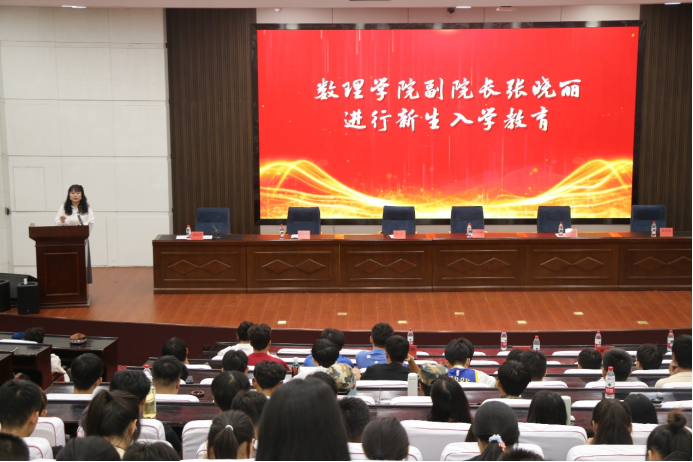 9月15日,数理学院2025级新生开学典礼暨入学教育大会在尚德楼三楼大报告厅举行。学院领导班子成员、各系各科室负责人、2025级辅导员、班主任和300余名本科生和研究生参加了开学典礼。典礼由学院党委副书记、副院长张晓丽主持。