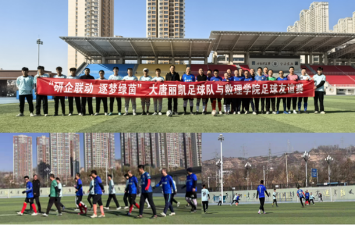 作为学术文化月的特色活动之一,“研企联动,逐梦绿茵” 足球友谊赛于 11 月 29 日上午在兰州交通大学北校区足球场热血开赛。数理学院党委书记查鹏堂莅临赛场,为本次比赛开球,拉开了赛事的精彩帷幕。数理学院研究生足球队与兰州大唐丽凯足球队以球会友,展开了一场精彩的 11 人制友谊赛。比赛遵循 “安全第一、友谊至上” 的原则,严禁铲球动作,上下半场各 45 分钟,中场休息 15 分钟。赛场上,双方队员配合默契、奋勇拼搏,展现出顽强的竞技精神和良好的体育风貌;场边观众呐喊助威,气氛热烈。此次赛事不仅丰富了师生课余生活,增强了研究生的团队协作意识和身体素质,更搭建了学院与企业交流互动的桥梁,彰显了数理学子积极向上的精神状态。