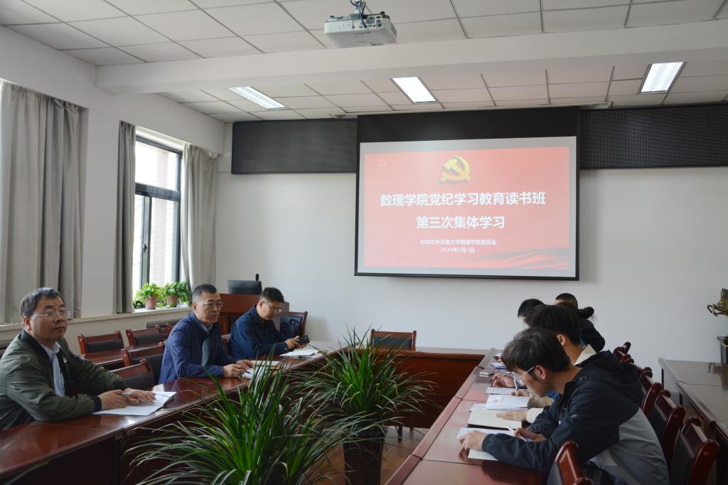 5月7日,数理学院党委召开党纪学习教育读书班第三次集体学习会议。学院党委委员、全体科级干部、党支部书记参加学习。会议由党委副书记陈永锡主持,党委委员张睿、温晓东、颜向平分头领学了《中国共产党纪律处分条例》第一百二十二条至一百五十八条内容。陈永锡做了题为“深刻认识加强党的纪律建设的重要性”的发言。