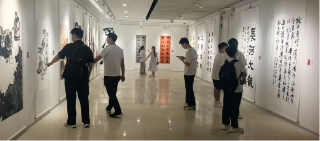 党员们走进天佑美术馆,参观甘肃省政协纪念中国人民抗日战争暨世界反法西斯战争胜利80周年“黄河之滨也很美”书画作品展,在浓墨重彩绘黄河奔涌、铁画银钩书山河豪情的书画作品中感受母亲河的恢弘气象与千年文脉,了解创作背景,深刻理解代表中华民族百折不挠、自强不息的黄河精神。