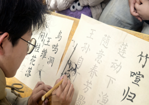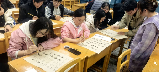 在“摹千年绝句,砺赤子初心”环节,同学们对照《四库全书》中《万首唐人绝句》的书影进行书叶临摹。在一笔一画的书写中,体会古人的家国情怀与中国书法的典雅韵致,进一步深化了对文化传承的理解与认同。
