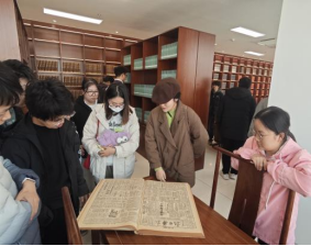 在校图书馆典藏馆,党员和积极分子们有序参观《四库全书》影印本,以及其他相关的珍贵典籍、地方志、红色特藏文献等。讲解员详细介绍了《四库全书》的编纂背景、书体结构、历史命运与文献价值,阐释了其在中华文化传承中的重要地位。大家驻足参观,通过近距离接触中华文化典籍瑰宝,深刻领会中华优秀传统文化的博大精深,理解“把马克思主义基本原理同中国具体实际相结合、同中华优秀传统文化相结合”的重大意义,增强了民族自豪感和文化自信心;直观感受中华优秀传统文化的博大精深与红色基因的一脉相承。